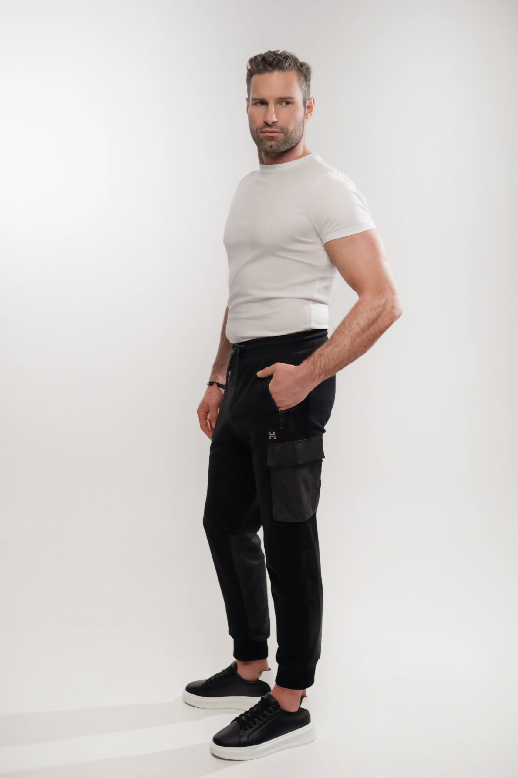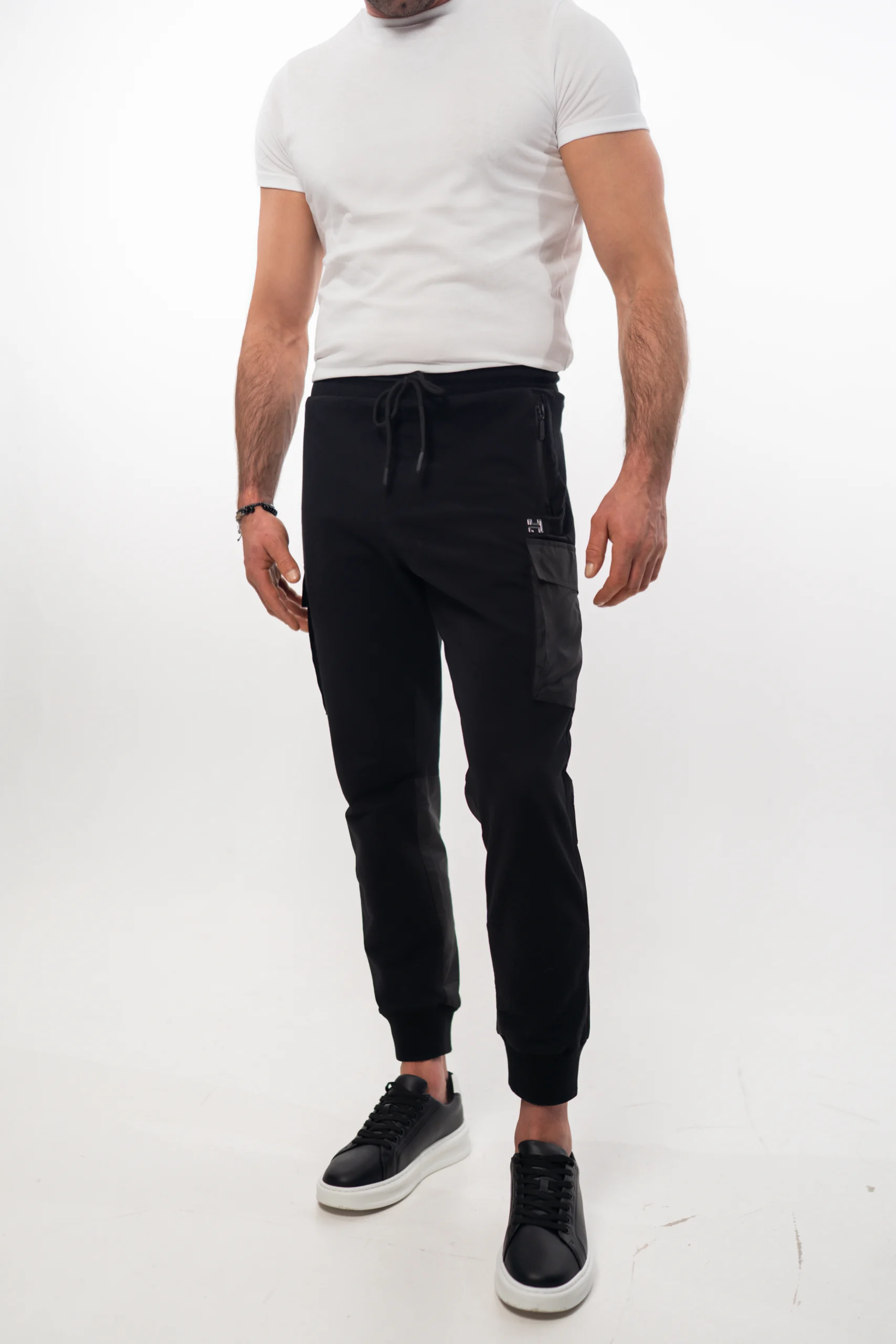 Na nogawkach zastosowano panele ortalionowe, które nadają spodniom wyrazisty charakter oraz zwiększają odporność na przetarcia. Dolna część nogawki zakończona jest ściągaczem. W pasie znajduje się regulacja oraz dekoracyjny system sznurka.
