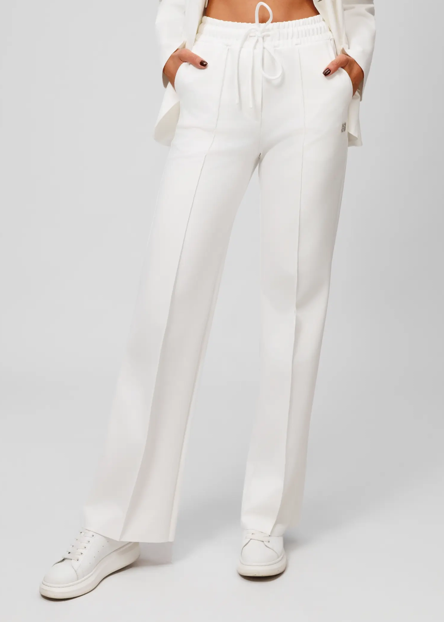 W połączeniu z marynarką damską z tej samej linii tworzą stylowy, nowoczesny komplet w formie garnituru. Idealne zarówno na co dzień, jak i w bardziej eleganckich zestawieniach.